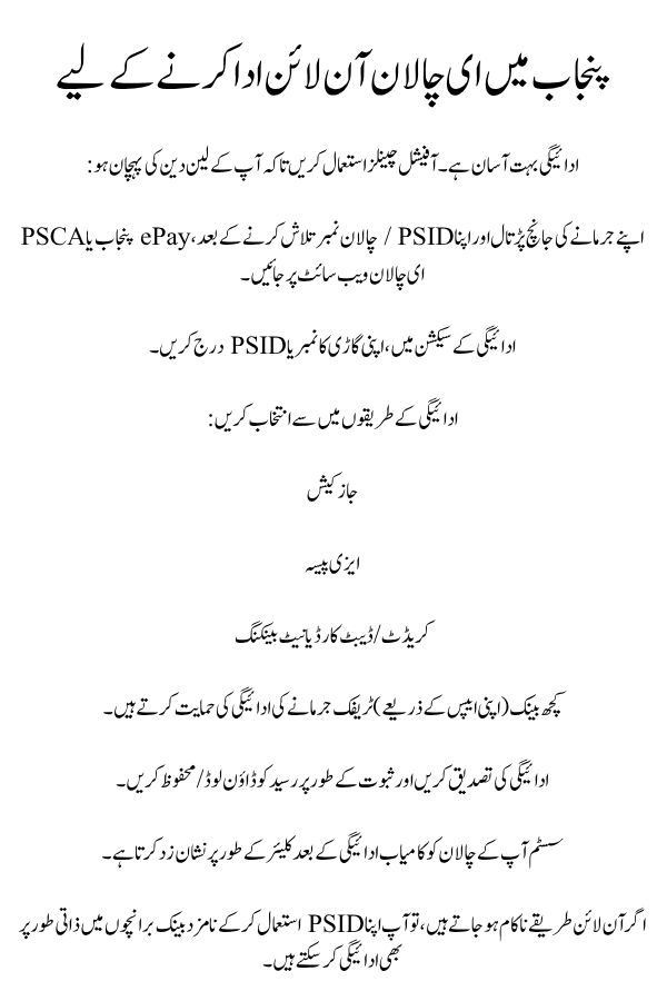 - After checking your fines and finding your PSID / challan number, go to ePay Punjab or the PSCA e‑Challan website.