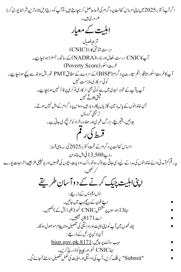 ctober 2025 has arrived, and with it comes a fresh update from the Ehsaas 8171 Program — the government’s flagship social welfare initiative that continues to support Pakistan’s most vulnerable families. If you’ve been waiting for your payment, or unsure whether you’re still eligible, this October 8171 notice is for you.