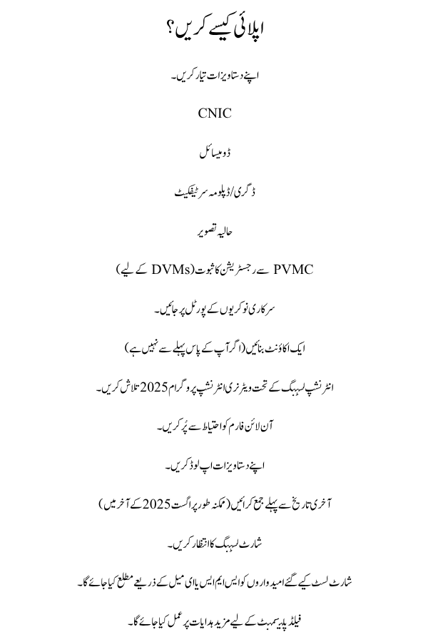 - Must be registered with PVMC (Pakistan Veterinary Medical Council)