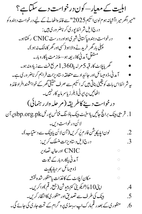 SBP Mera Ghar Mera Ashiana Scheme 2025